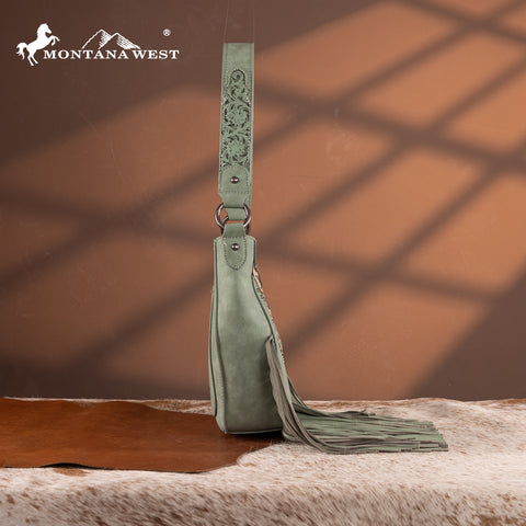 MW1323G-918 Montana West Tooled Fringe Collection Hobo Shoulder Bag