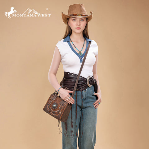 MW1331-8322 Montana West Concho Collection Small Tote/Crossbody