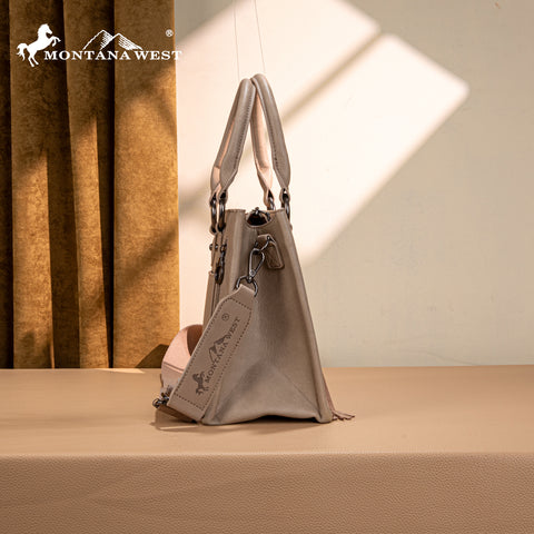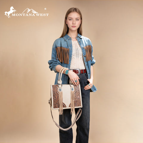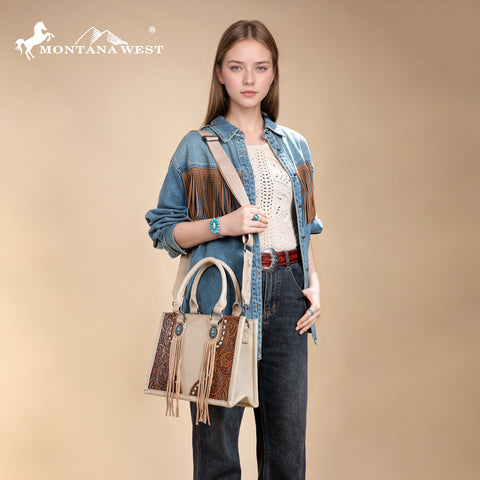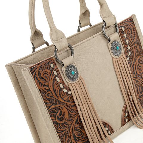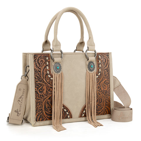 MW1339-2002 Montana West Tooled Concho Tote/Crossbody -Tan