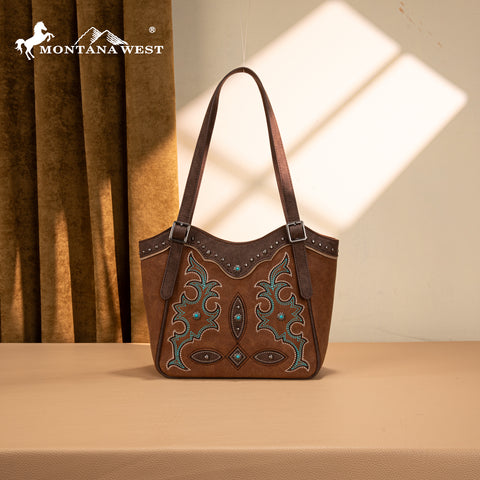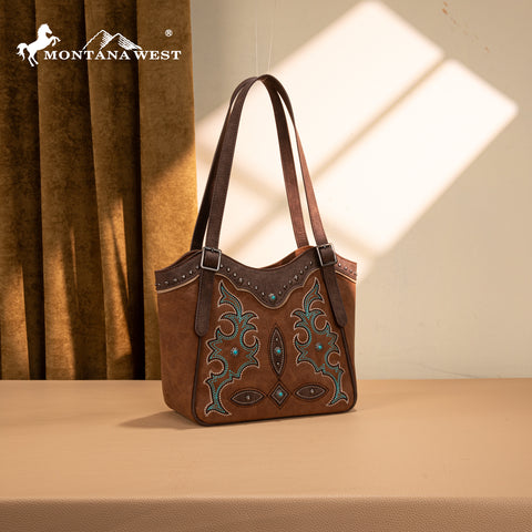 MW1344-8250 Montana West Embroidered Boot Scroll Tote