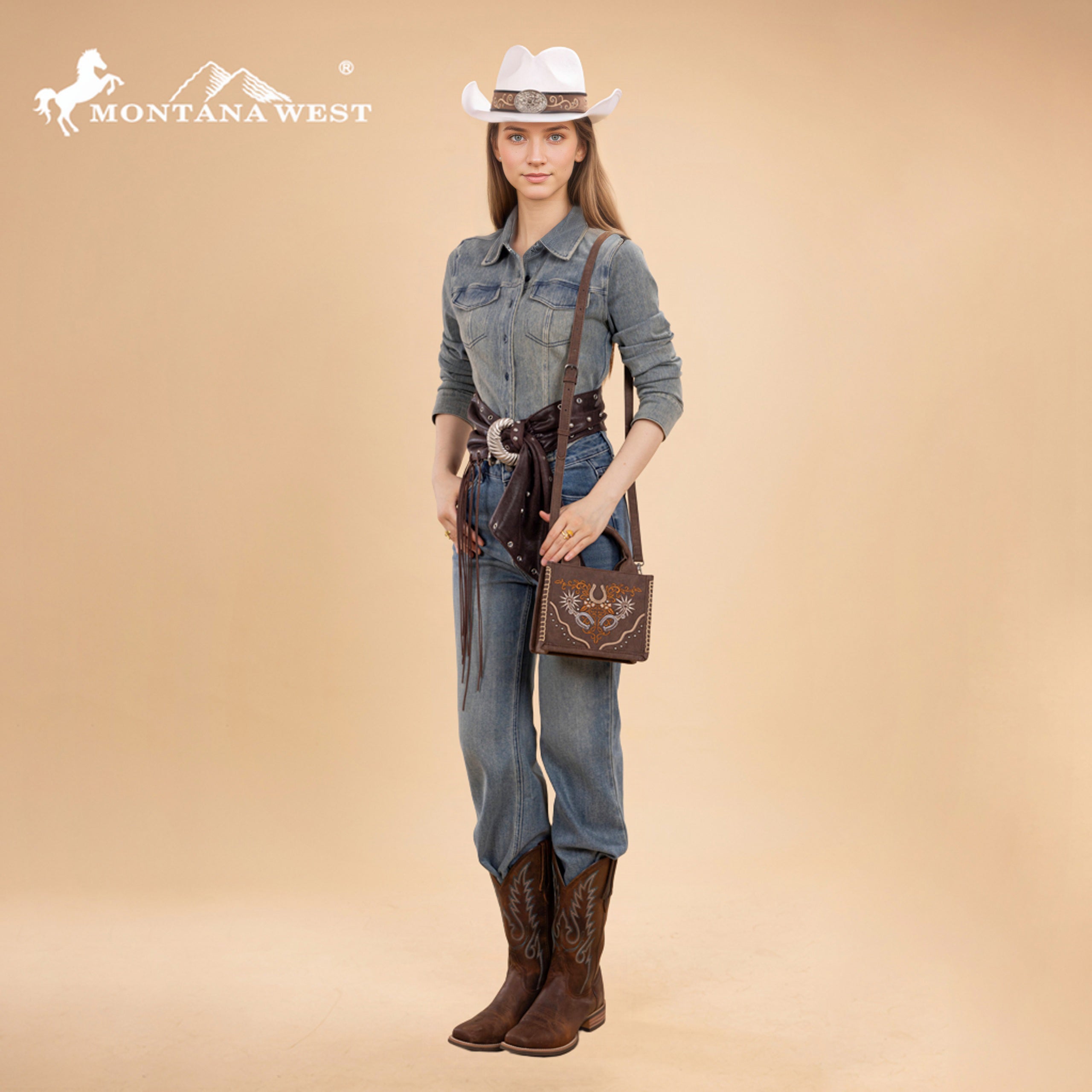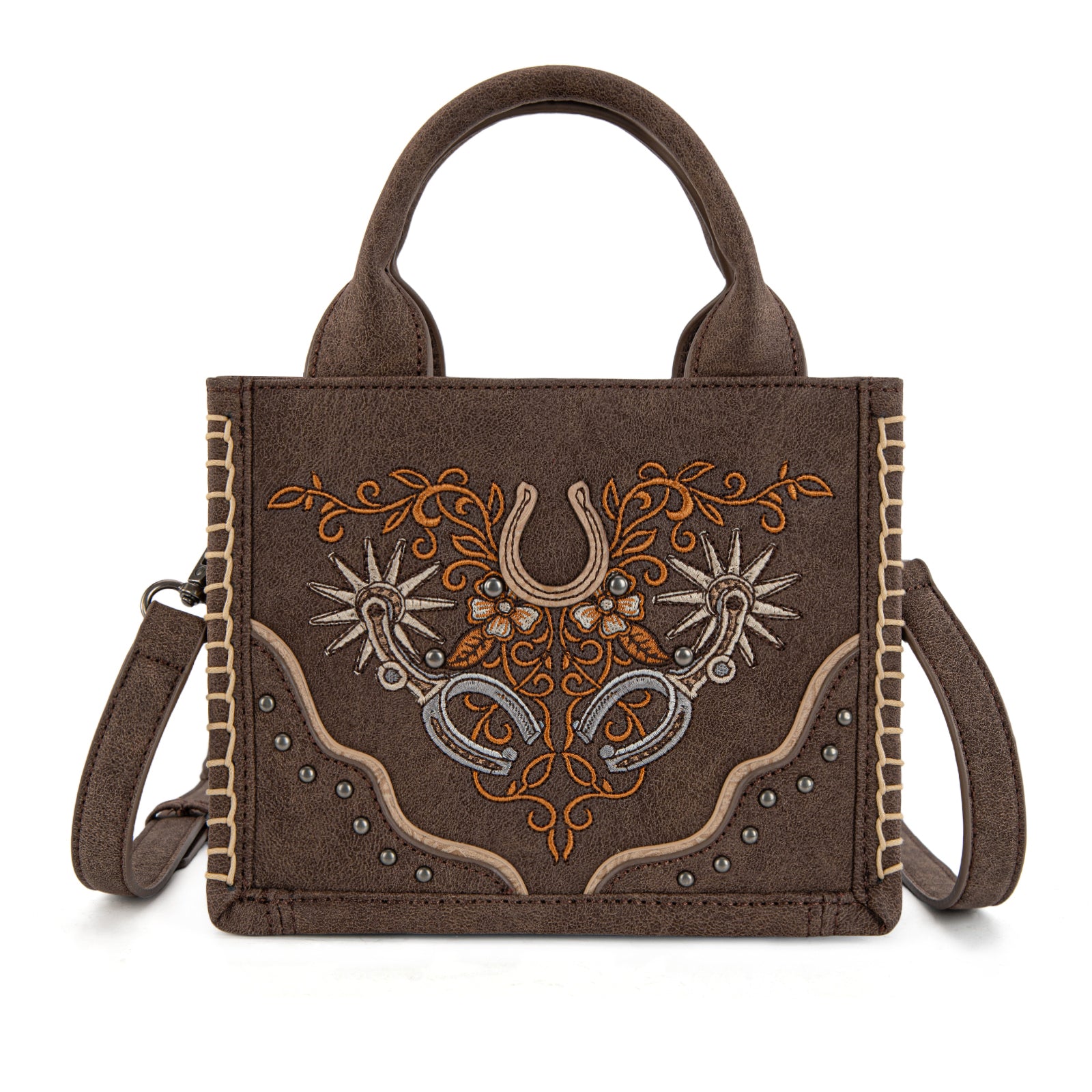 SKU:MW1352-8121BRAdd a bold western touch to your everyday look with this beautifully detailed mini tote. Designed with a rugged yet refined feel, this bag blends classic cowboy charm with modern functionality.
