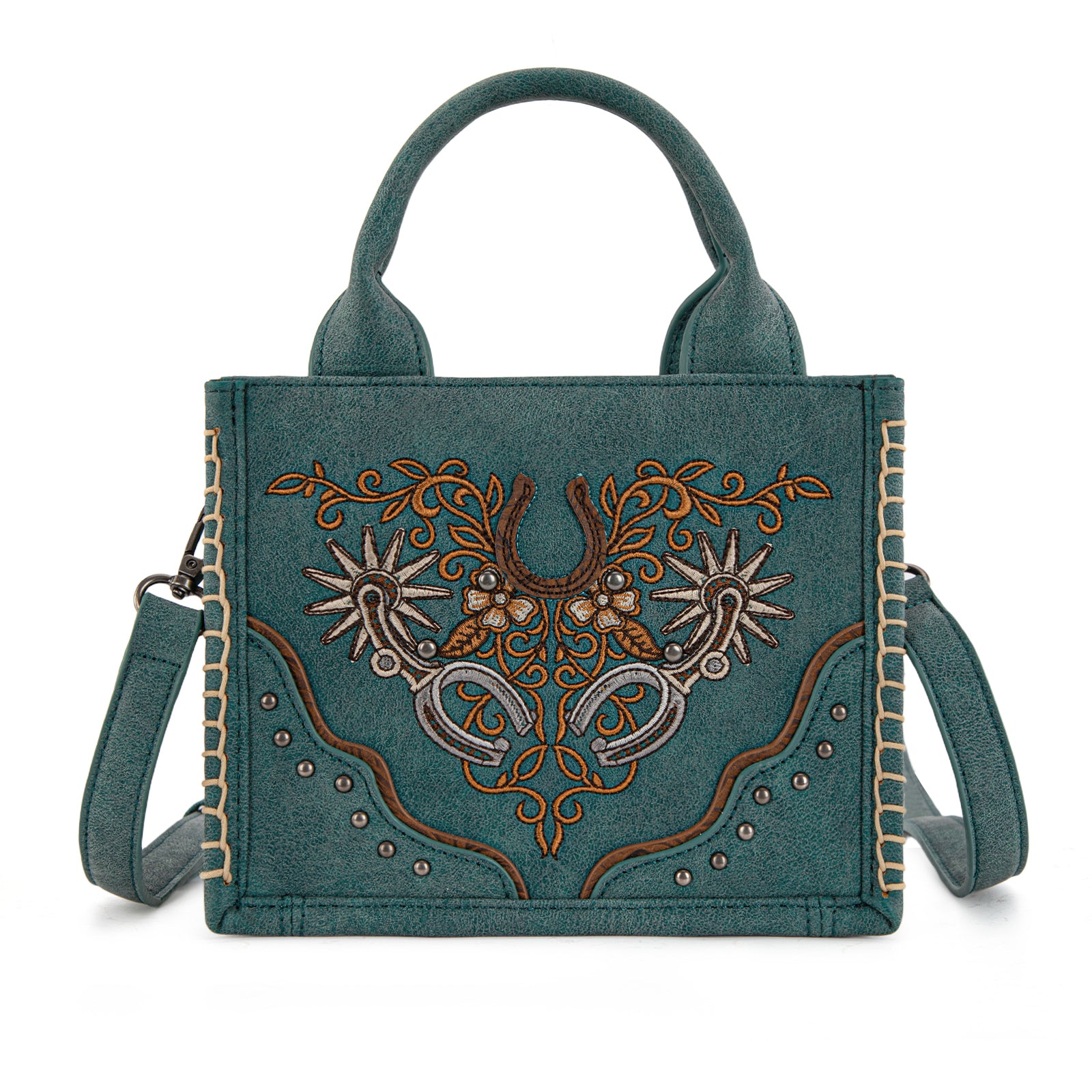- Stud accents and whipstitch trim for added texture and character