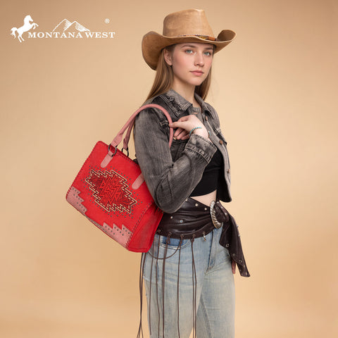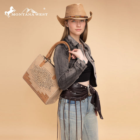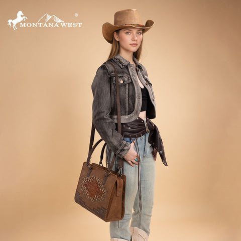 MW1354G-8355 Montana West Tooled Aztec Concealed Carry Tote/Crossbody