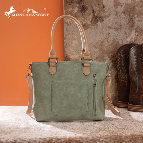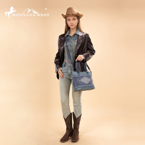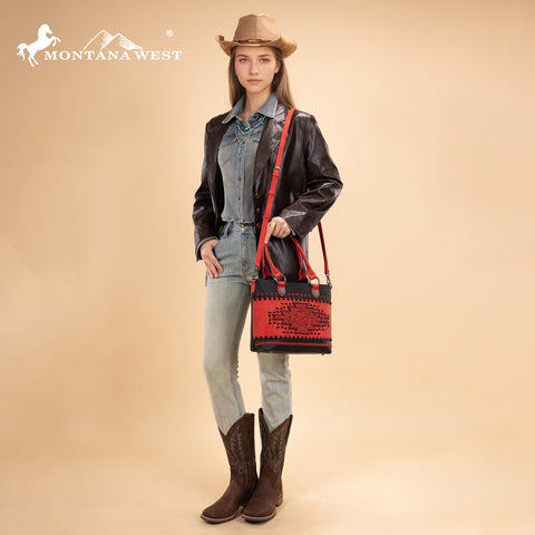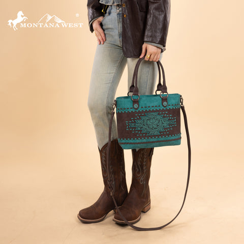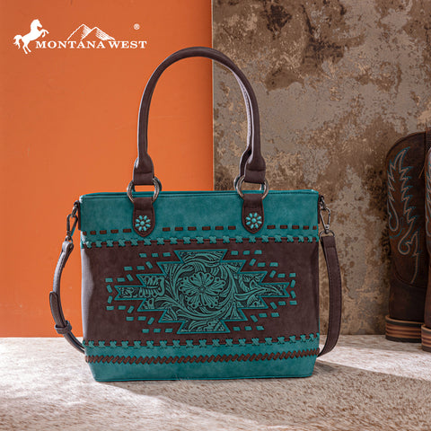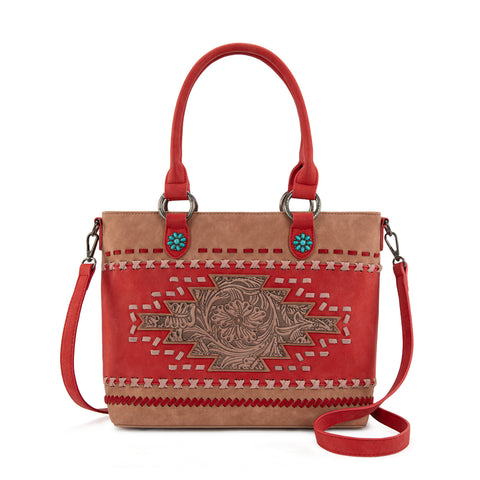 MW1356-8260 Montana West Western Tooled Aztec Concealed Carry Tote/Crossbody