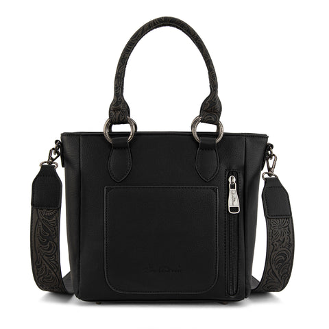 MW1358G-8120 Montana West Hair-On Hide Concealed Carry Tote Bag with Tooled Strap - Black