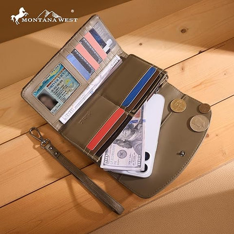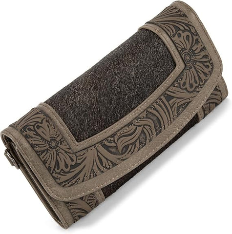 MW1360-W018 Montana West Hair-On Hide Tooled Wallet – Western Wristlet - Coffee