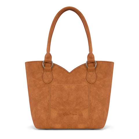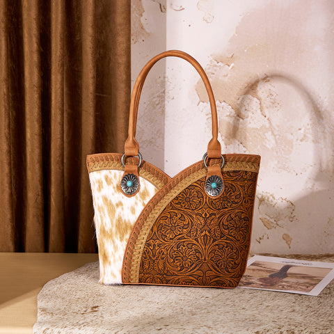 MW1365-8005BR Montana West Tooled & Cowhide Whipstitch Tote Bag - Brown