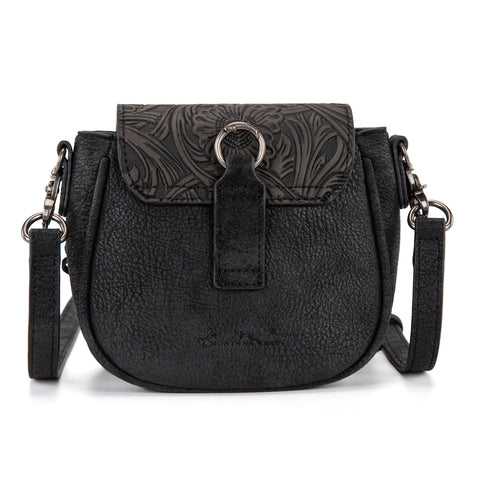 MW1366-8360BK Montana West Embossed Fringe Mini Crossbody -Black