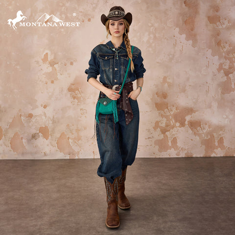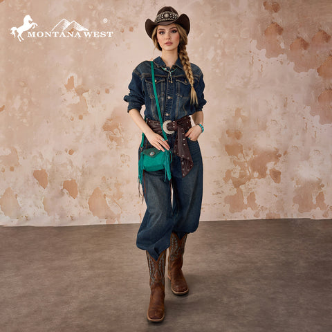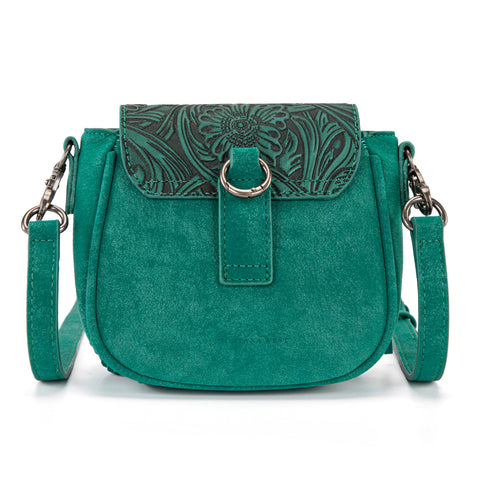 MW1366-8360TQ Montana West Embossed Fringe Mini Crossbody -Turquoise