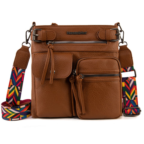 MWC-100ABR Montana West Multi Pockets Crossbody Bag - Brown