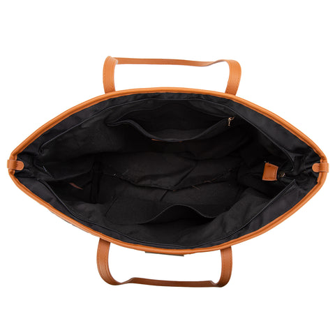 Made of PU leather  this carry-all tote has:   Montana West logo  Top zipper closure Inside zippered compartment has a zipper pocket and an open pocket Double flat strap 17"...