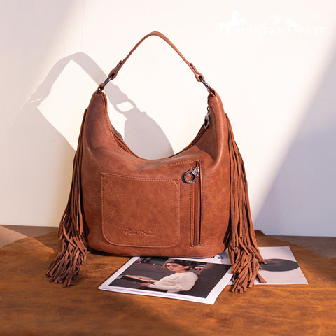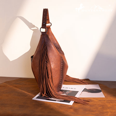 MWF1007G-9360 Montana West Fringe Collection Concealed Carry Hobo/Crossbody -Brown