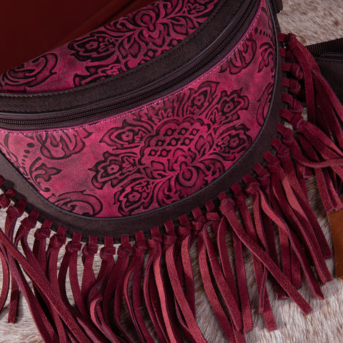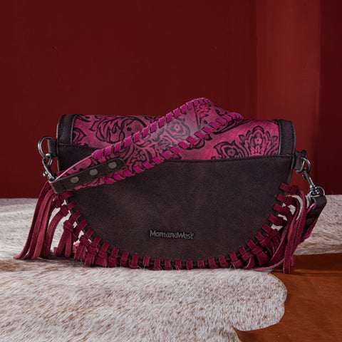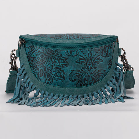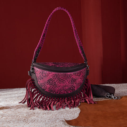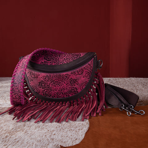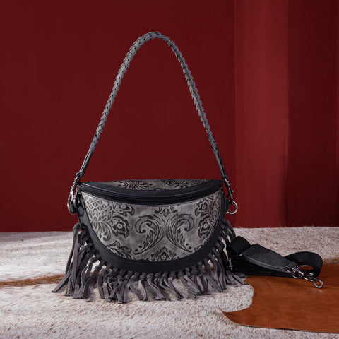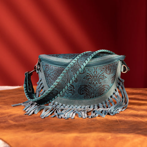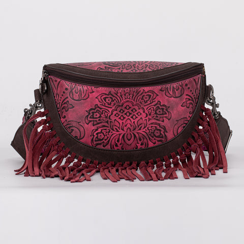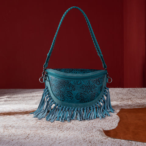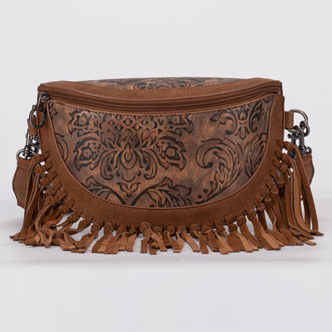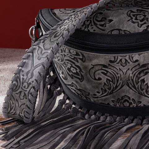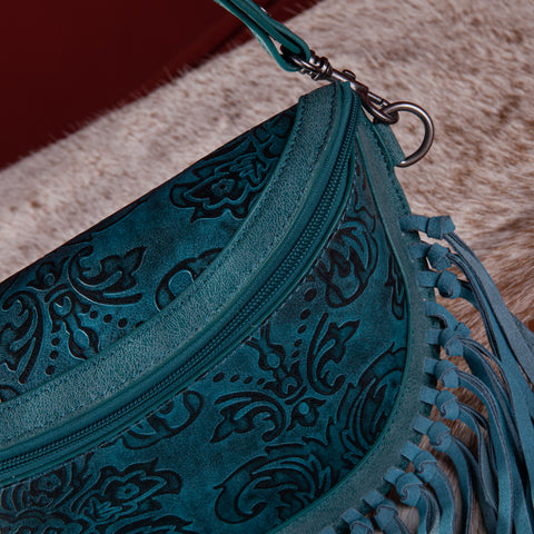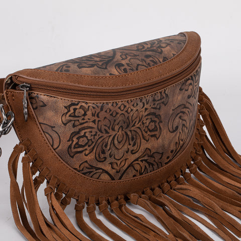 MWF1010-194 Montana West Embossed Floral Hand-Tie Fringe Bum Bag/Crossbody Bag