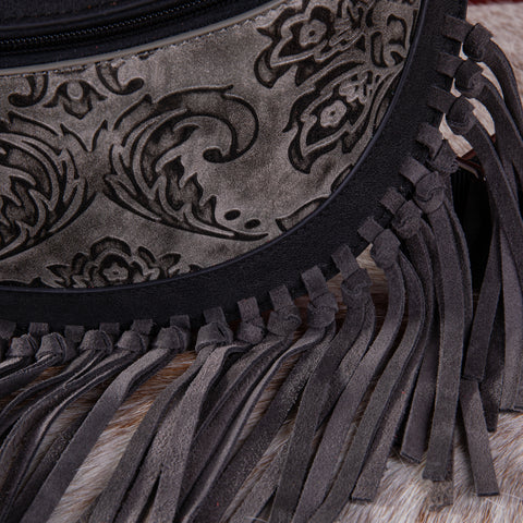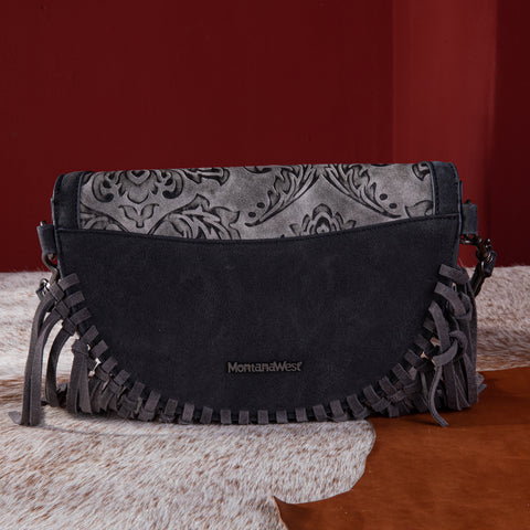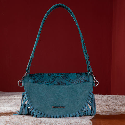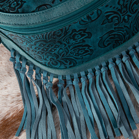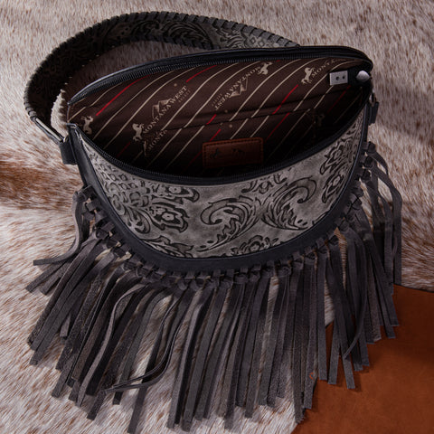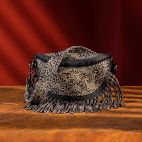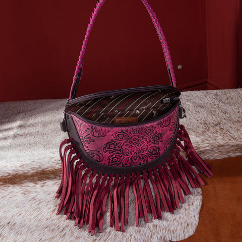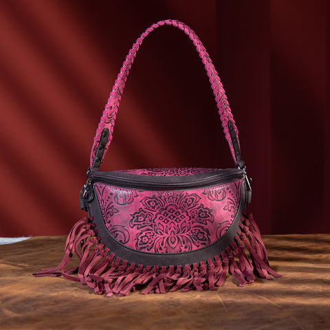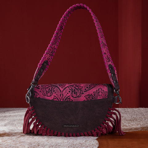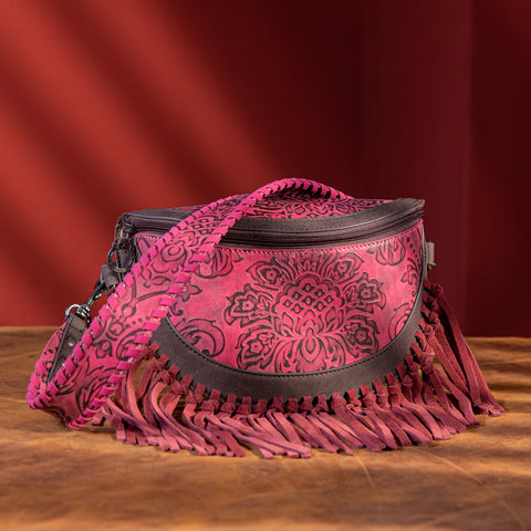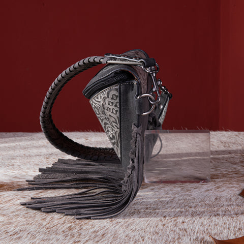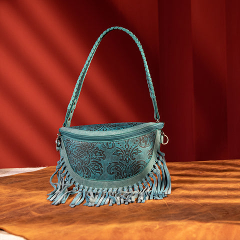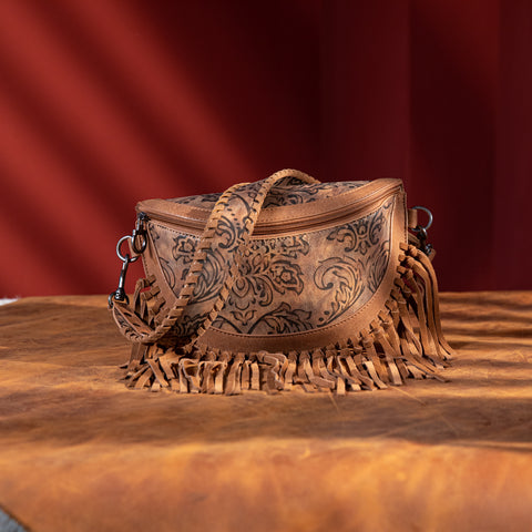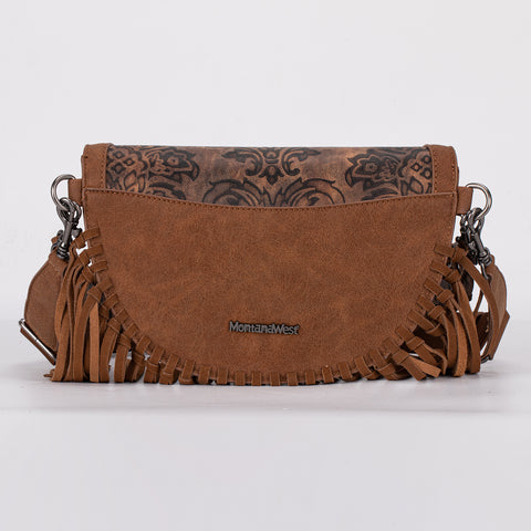 MWF1010-194 Montana West Embossed Floral Hand-Tie Fringe Bum Bag/Crossbody Bag