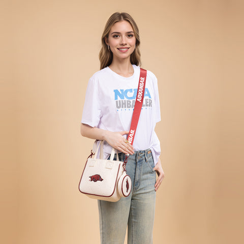 NC-AFU014BG University of Arkansas Razorbacks Tote/Crossbody Bag - Beige