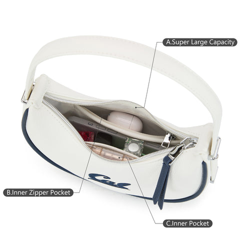 Made of PU Leather, this bag has: Smooth, durable synthetic leather construction Officially licensed University of California Berkeley Golden Bears design Embroidered iconic Golden Bears logo with embossed pattern Curved hobo...