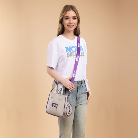 NC-TCU014GY Texas Christian University Horned Frogs Tote/Crossbody Bag -Grey