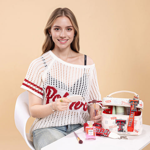NC-TTU007BG Texas Tech University Red Raiders Vanity Top Handle-Bag -Beige