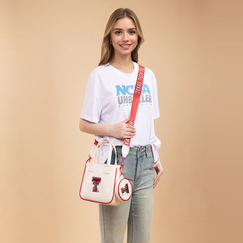 NC-TTU014BG University of Texas Tech Red Raiders Tote/Crossbody Bag -Beige