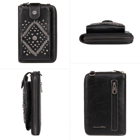 PHD-2104 American Bling Whipstitch Studs Phone Wallet/Crossbody