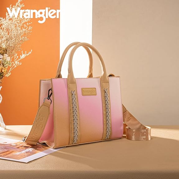 SKU:WG308-8120STNThis structured satchel features a soft ombre finish with braided accents and the Wrangler logo for a bold yet feminine look.