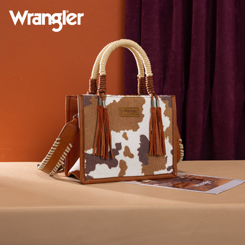 PRE-ORDER WG386-8120S  Wrangler Cow Print Tote/Crossbody -Brown