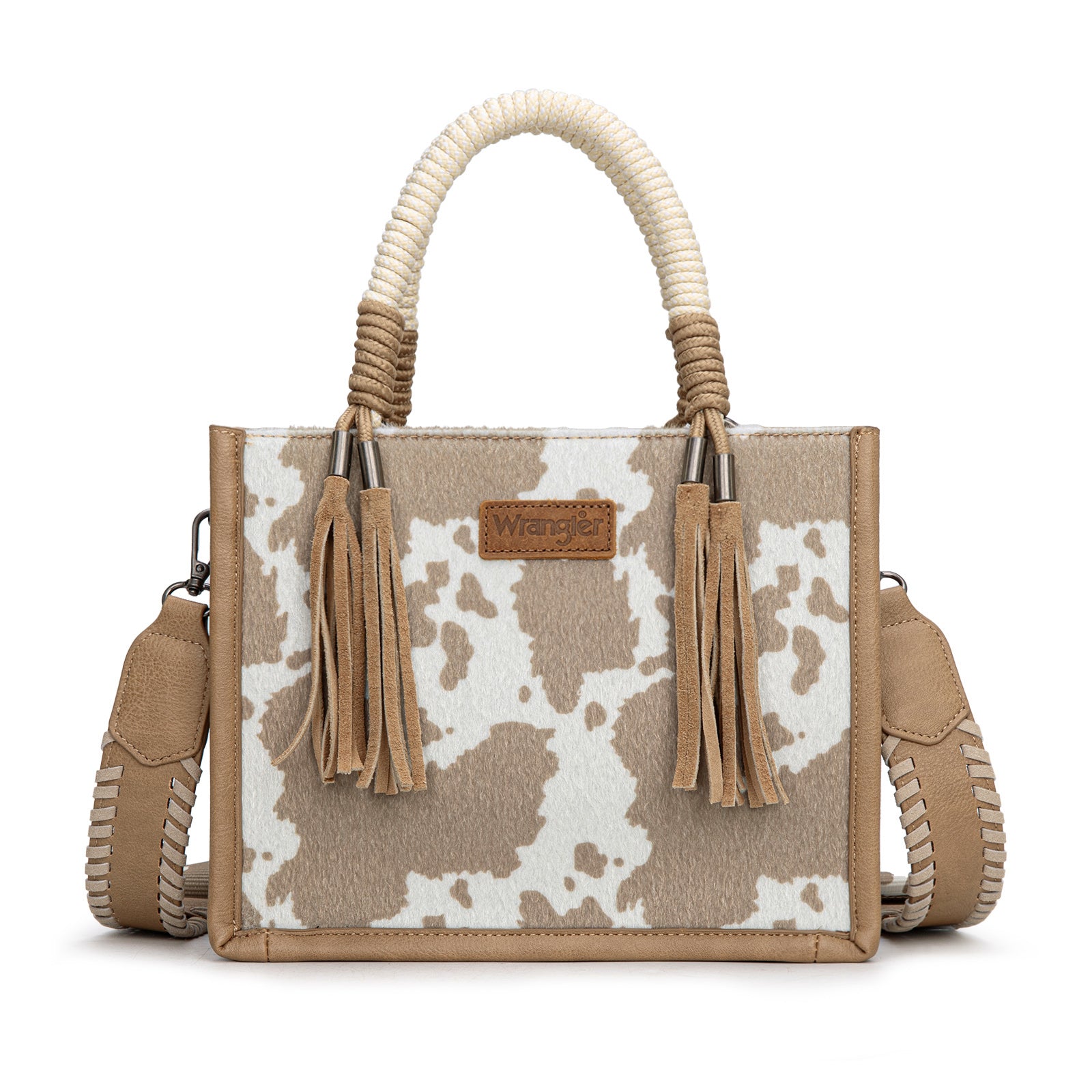 PRE-ORDER WG386-8120S Wrangler Cow Print Tote/Crossbody -Khaki