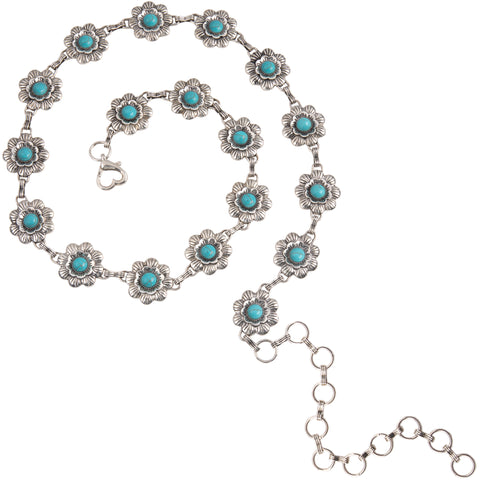 RCB-1043 Rustic Couture Flower Concho Link Chain Belt with White Inlays