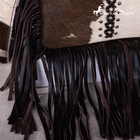 RLC-L186 Montana West Genuine Leather Hair-On Fringe Crossbody with Detailed Leather Strap-Coffee
