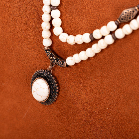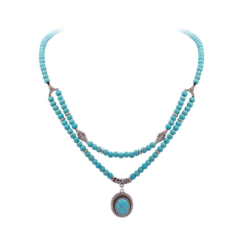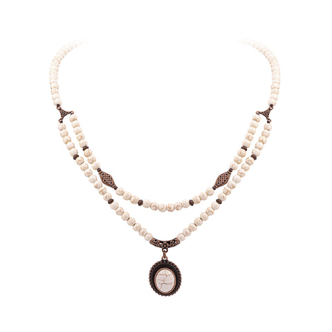 RNS-04-120 Rustic Couture's Double Layered Beaded Necklace With Pendant