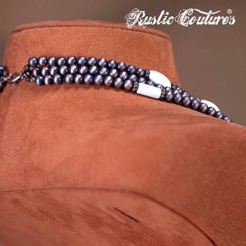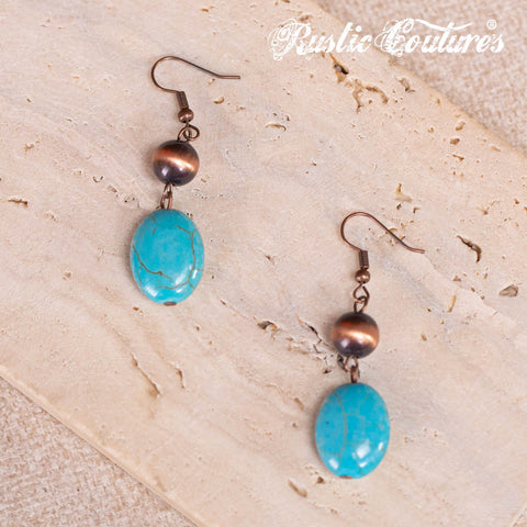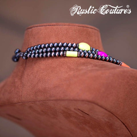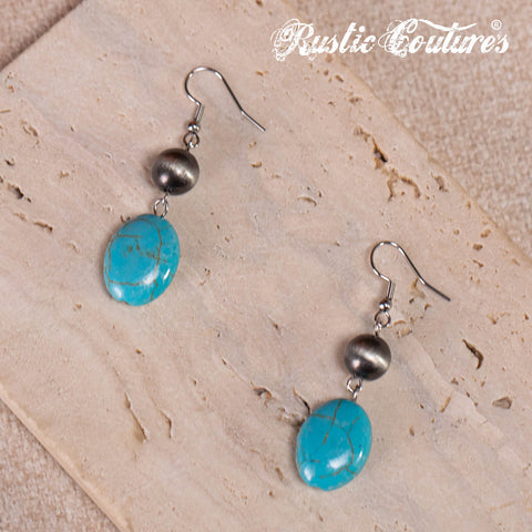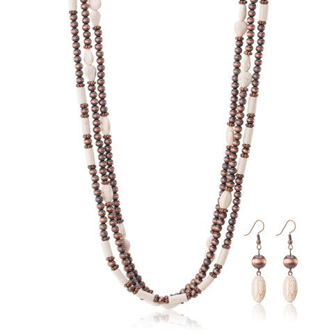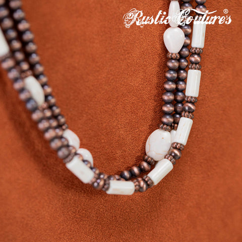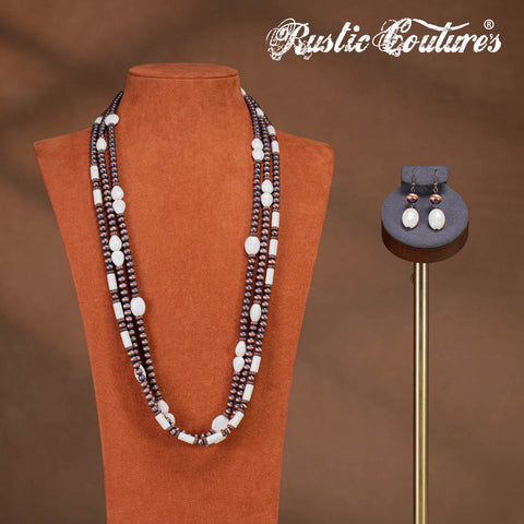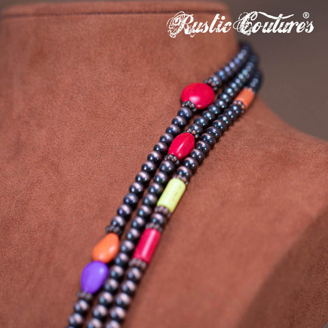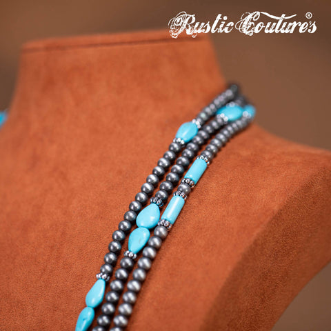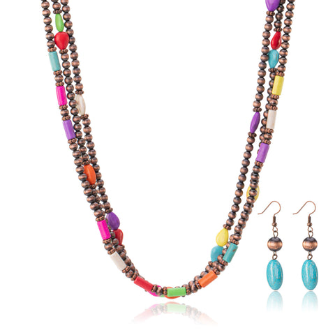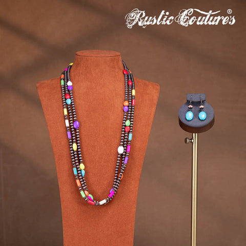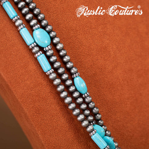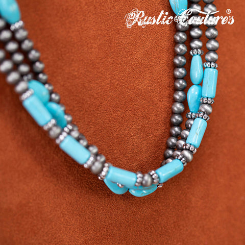 RNS-1033 Rustic Couture's Turquoise Beaded Layered Necklace Earrings Set