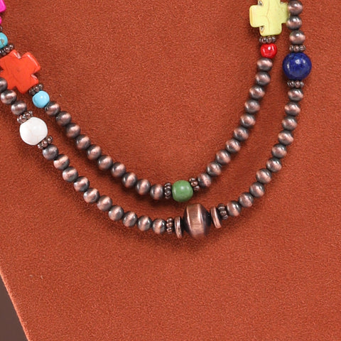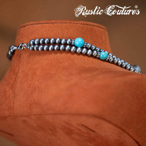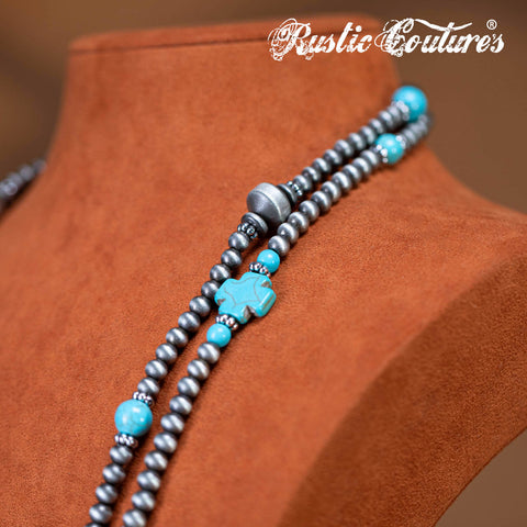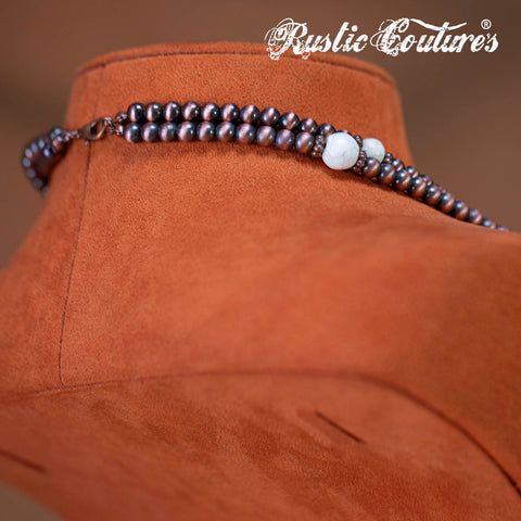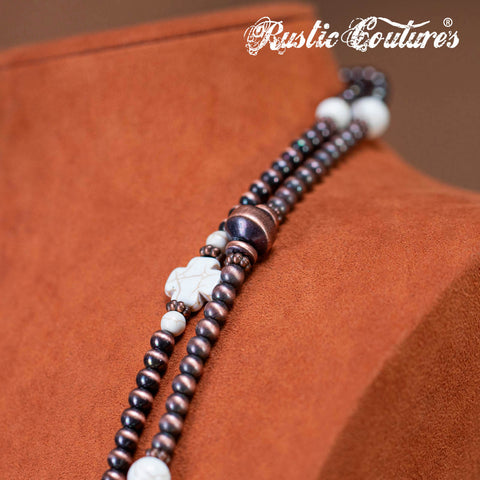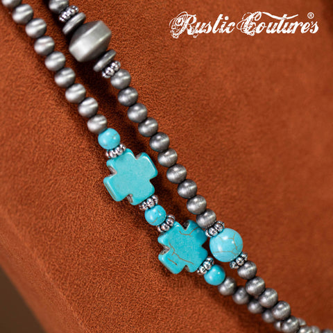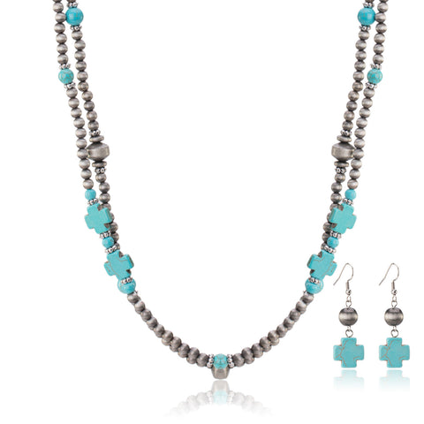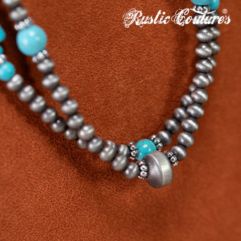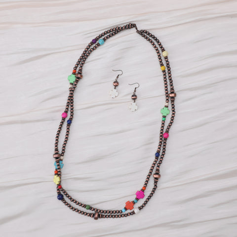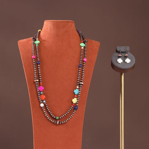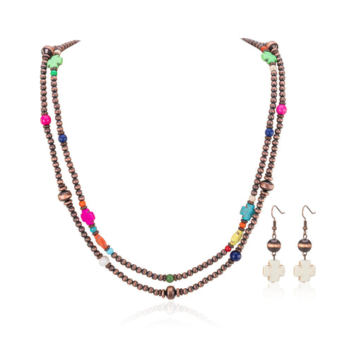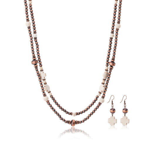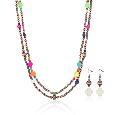 RNS-1038 Rustic Couture's Layered Beaded Necklace Earrings Set