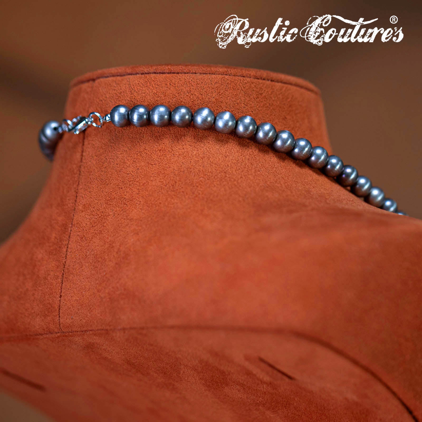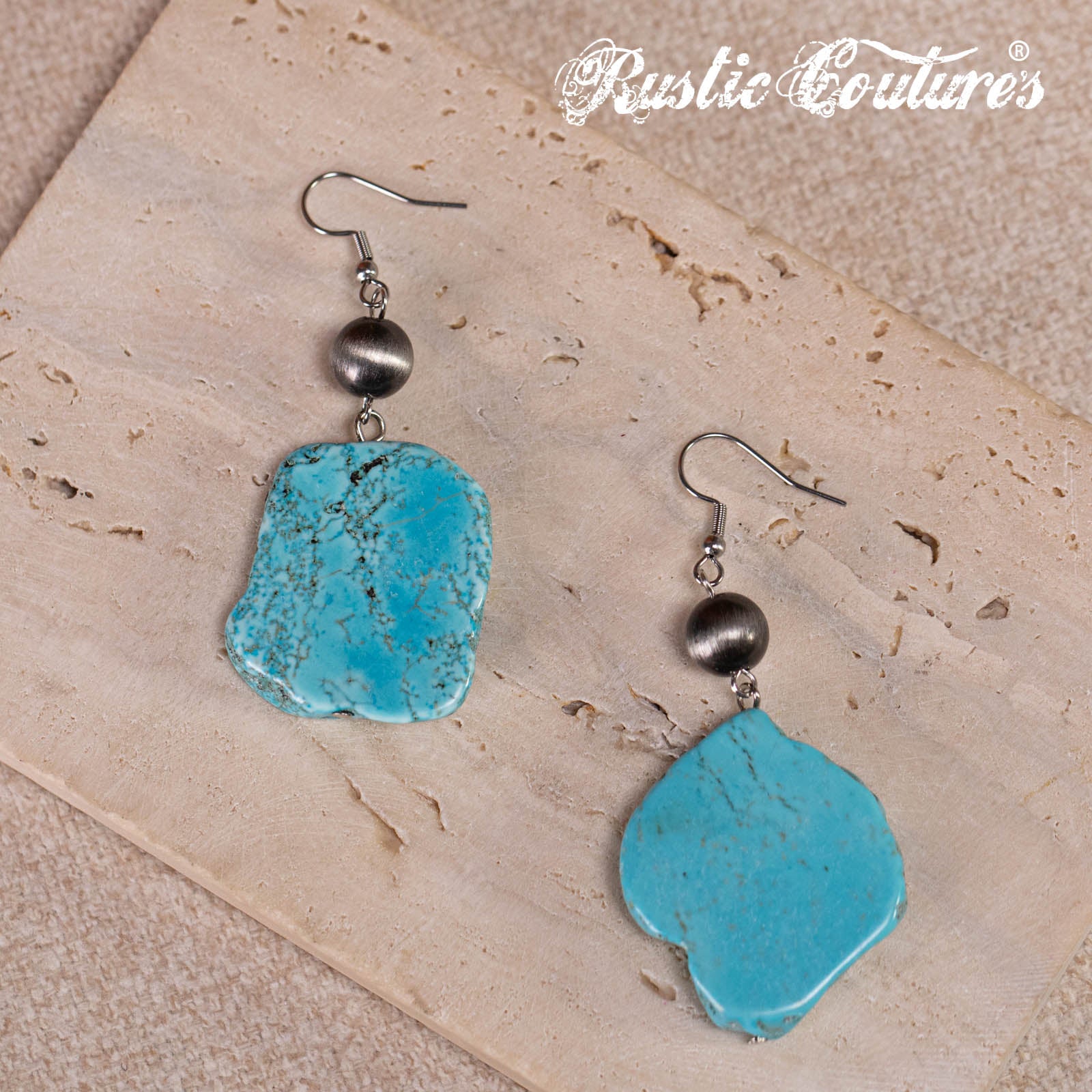 RNS-1041 Rustic Couture's Turquoise Nuggets Beaded Necklace Daisy Pendant Earring Set
