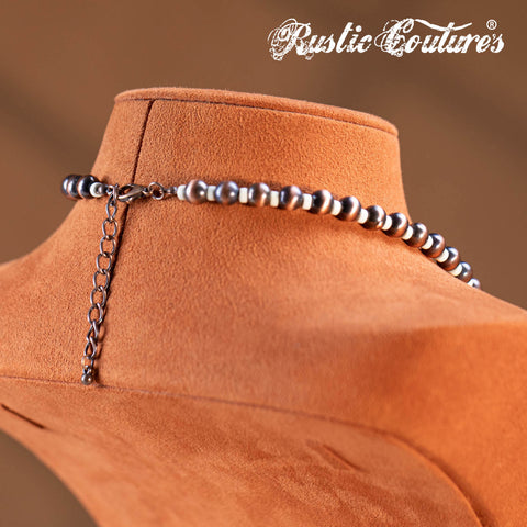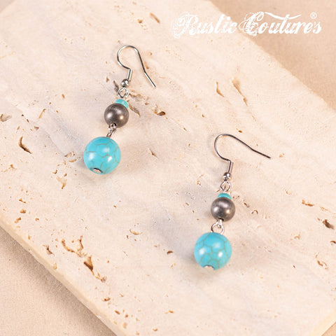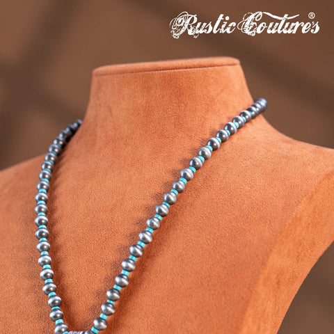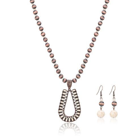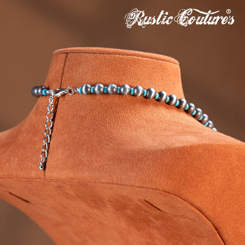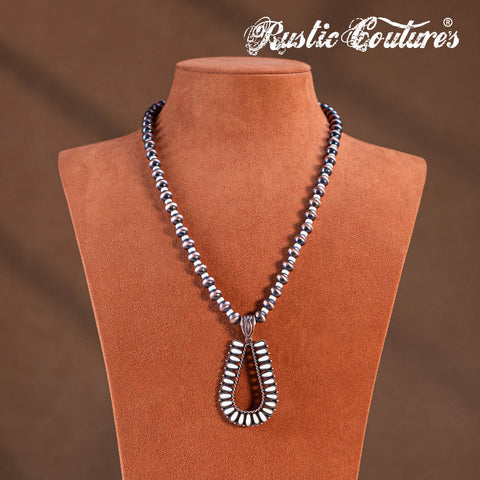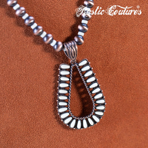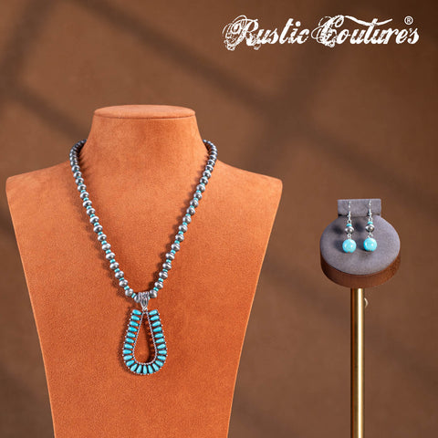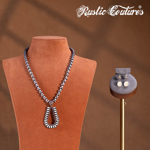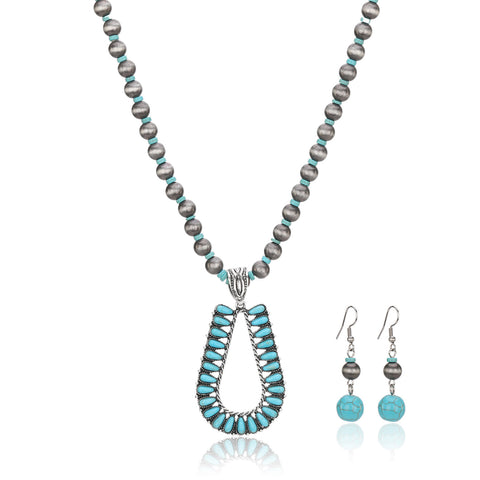 RNS-1044 Rustic Couture's Beaded Necklace Turquoise Beaded Horse Shoe Pendant Earrings Set