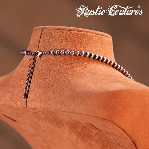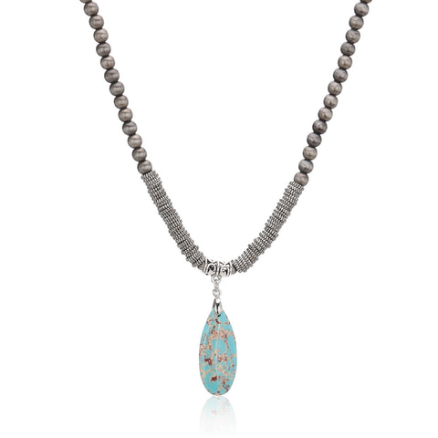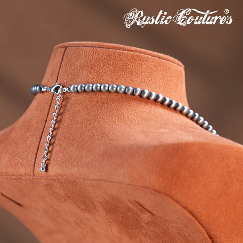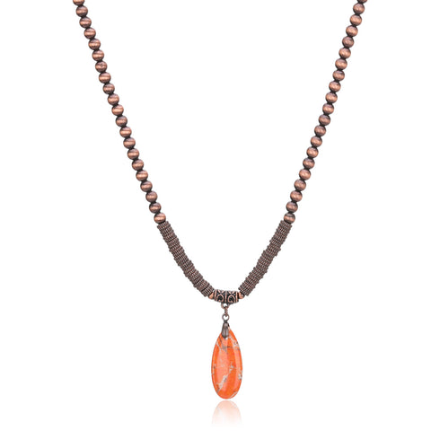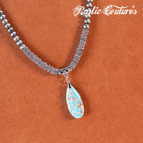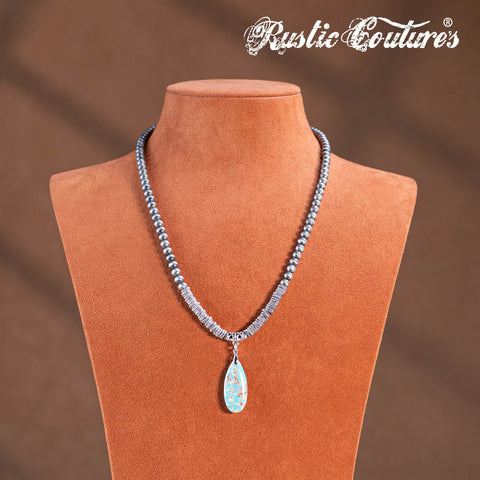 RNS-1058 Rustic Couture's Bohemian Beaded Necklace Stone Pendant