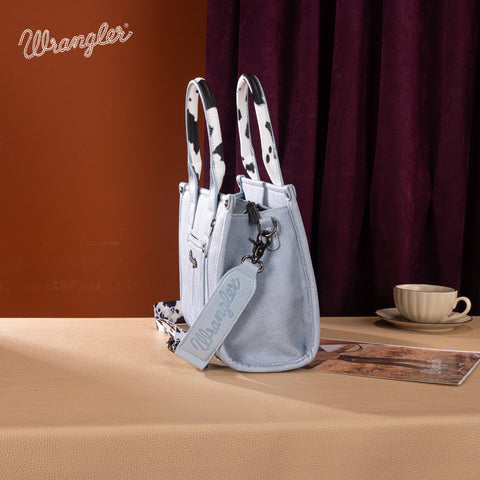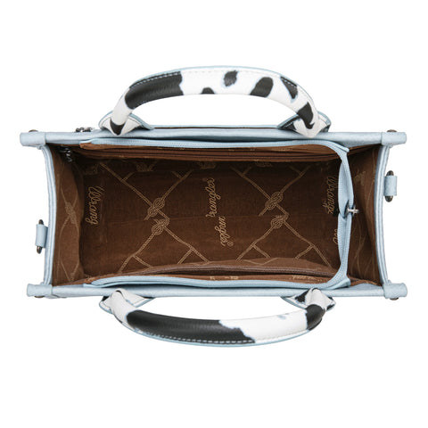 SP-WG102-8120SBL  Wrangler Cow Print Concealed Carry Tote/Crossbody - Blue