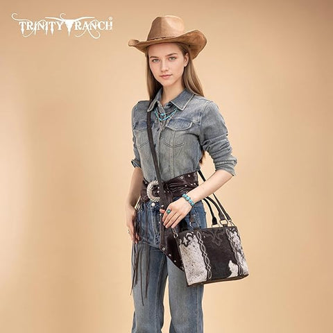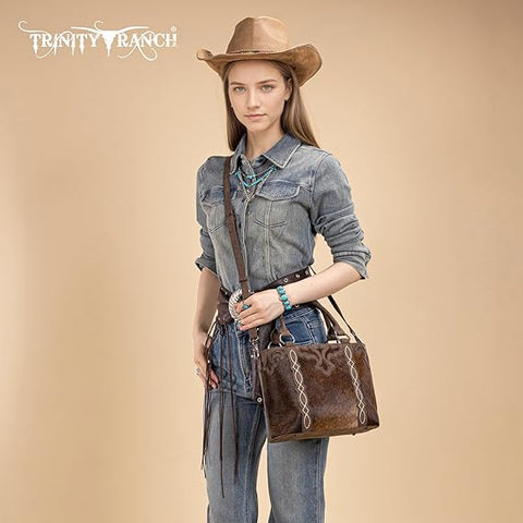 TR198G-8899 Trinity Ranch Genuine Hair-On Cowhide Collection Concealed Carry Tote