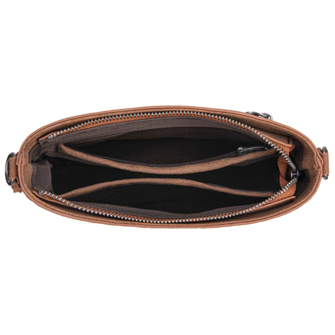 TR200-1814 Trinity Ranch Floral Tooled Hair-On Cowhide Crossbody - Brown