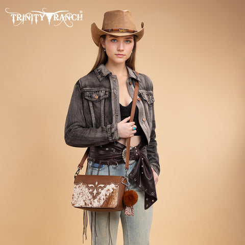 TR202-8320BR Trinity Ranch Genuine Cowhide Crossbody - Brown