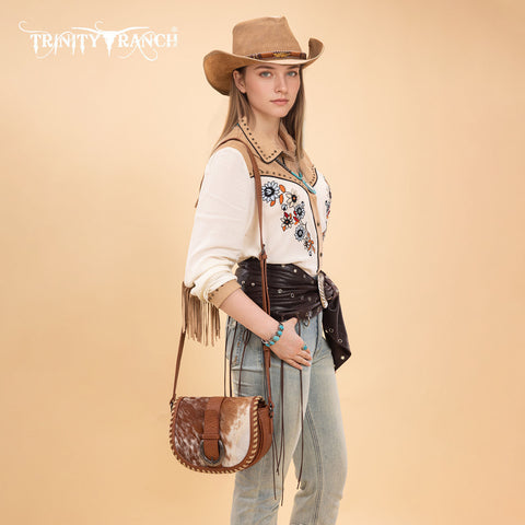 TR204-8360 Trinity Ranch Western Hair-On Cowhide Saddle Crossbody - Brown