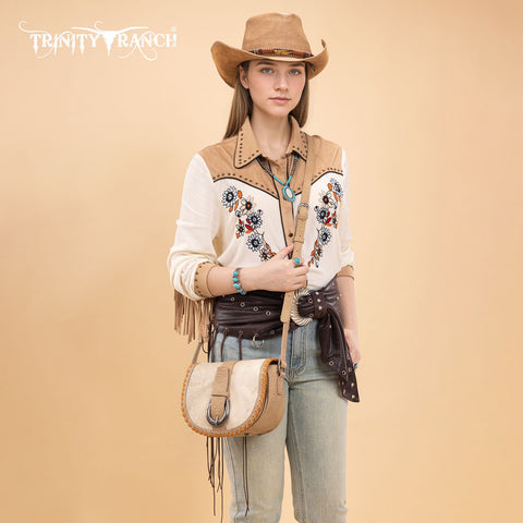 TR204-8360 Trinity Ranch Western Hair-On Cowhide Saddle Crossbody - Tan