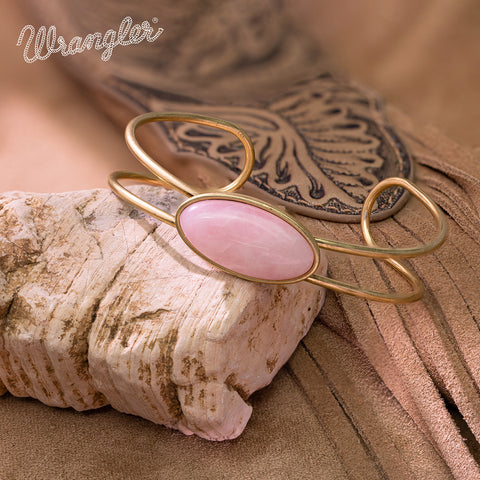 WBC-1130G  Wrangler Gold Western Natural Stone Cuff Bangle -Pink