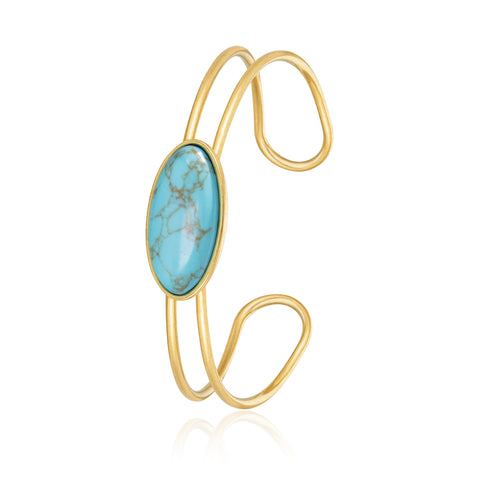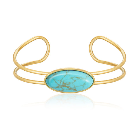 WBC-1130G Wrangler Gold Western Natural Stone Cuff Bracelet -Turquoise