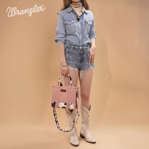 WG102-8120S Wrangler Cow Print Concealed Carry Tote/Crossbody - Hot Pink