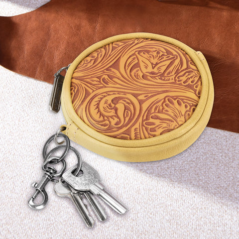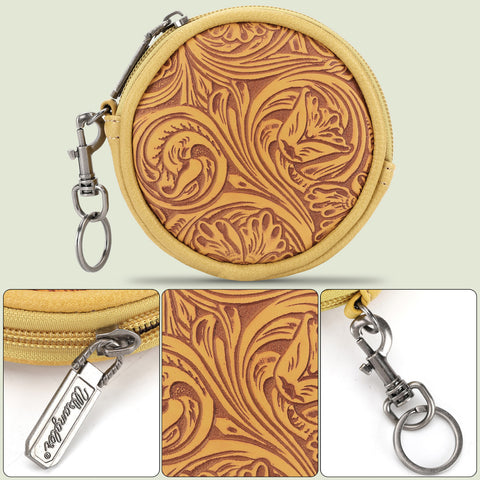 WG116-003 Wrangler Floral Tooled Circular Coin Pouch Bag Charm - Mustard