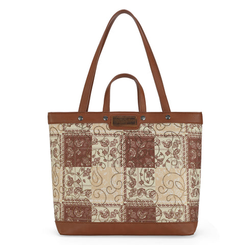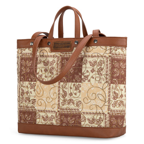 WG138-2002 Wrangler Paisley Pattern Dual Sided Print Tote- Brown