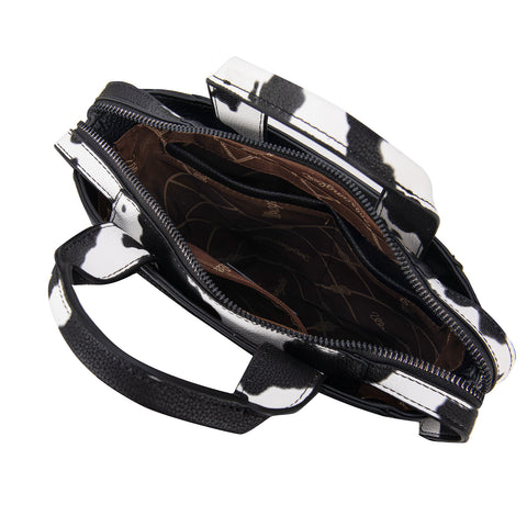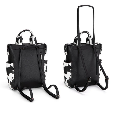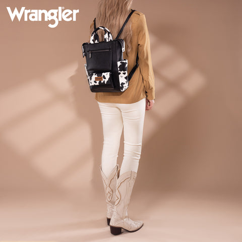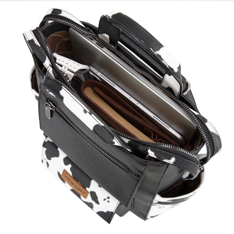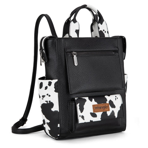 WG161-91123 Wrangler Cow Print Tote/Shoulder Bag Convertible Backpack - BK-OW