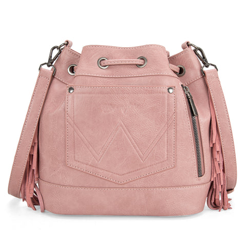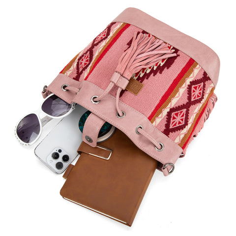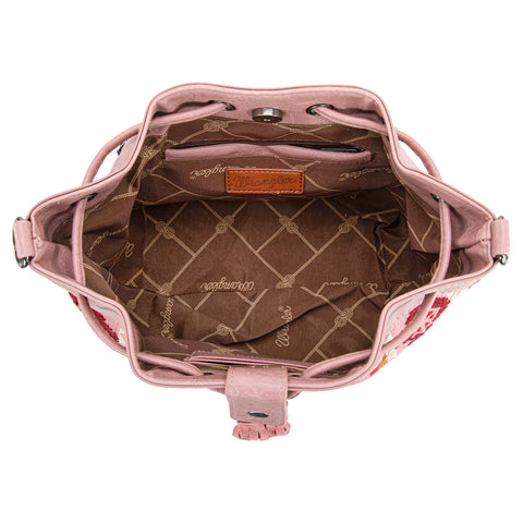 WG174-2029 Wrangler Southwestern Knitted Drawstring Crossbody Bag -Hot Pink