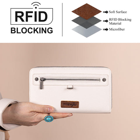 WG185-W050 Wrangler Dual Zipper Compartment Large Wallet -Beige