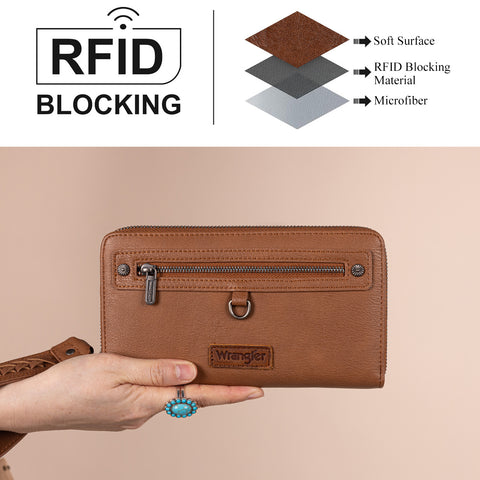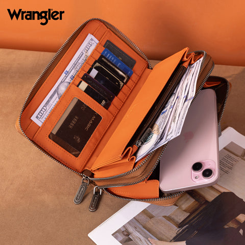 WG185-W050 Wrangler Dual Zipper Compartment Large Wallet -Brown